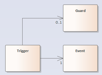 A trigger isn’t just a simple event, but it’s actually a qualified event, meaning it’s potentially been approved by a guard condition. As guard conditions haven’t been involved yet, let’s just look at what a trigger might be as a way to bring guards in as well.